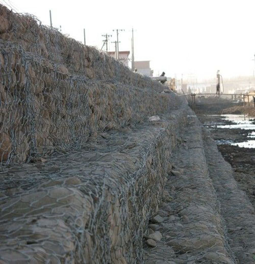 10%(5%)鋅鋁合金格賓網(wǎng)主要用于潮濕環(huán)境中,如河流、海洋等水利工程中,其抗酸堿、防腐蝕性能優(yōu)于普通低碳鋼絲制品,配合聚酯物效果更佳。